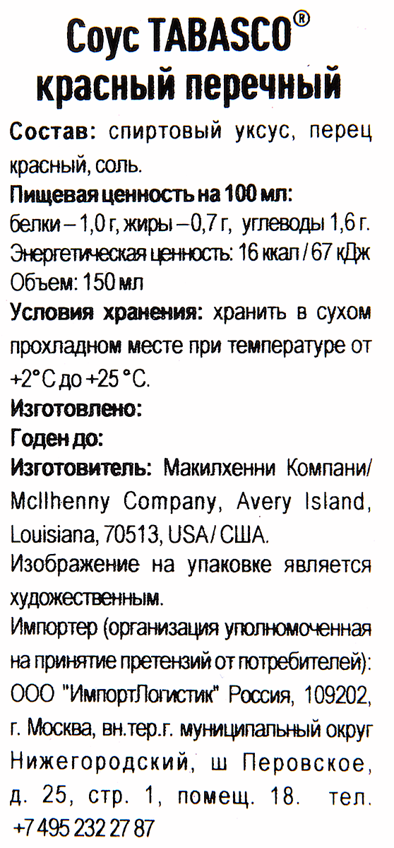 Соус Tabasco Оригинальный Красный Перечный, 150мл