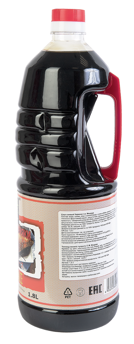 Соевый соус (обезжиренные соевые бобы, пшеница, поваренная соль, вода), сахар, вода, рисовый уксус, соль, загуститель Е1440, пищевой краситель Е150d, усилитель вкуса и аромата Е621.