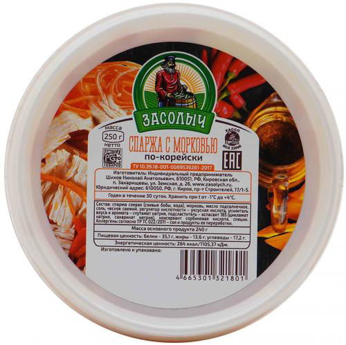 Спаржа ТМ Засолыч по-корейски с морковью, 250г