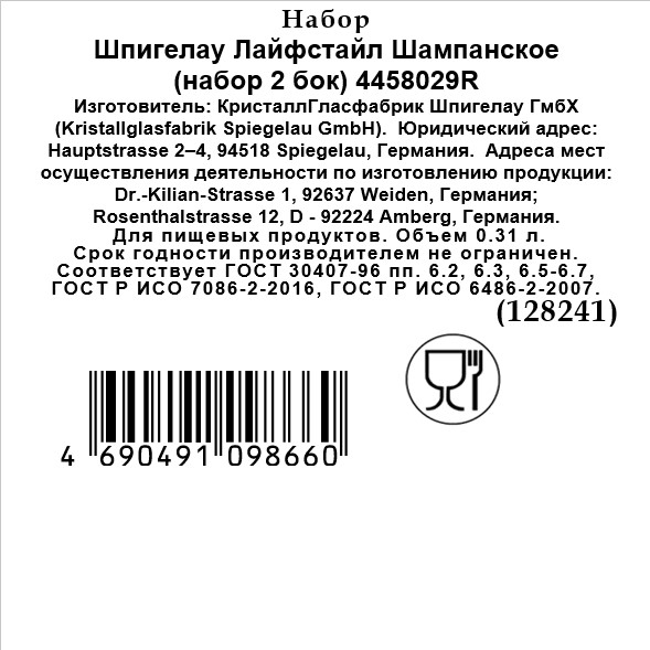 Набор бокалов для шампанского Spiegelau Lifestyle, 310мл х 2шт
