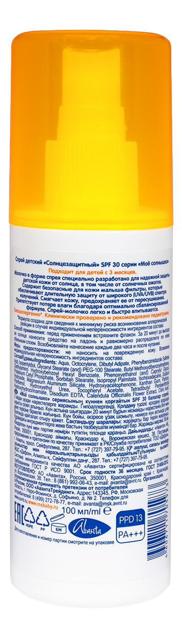 Спрей-молочко солнцезащитный детский Мое солнышко SPF30, 100мл