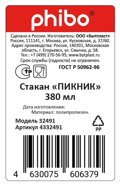 Стаканы линейки Picnic от Phibo объёмом 380мл подходят для порции прохладительного или горячего напитка. Лёгкие, но прочные стаканы удобно брать с собой на пикник или использовать дома во время праздников. Надёжный пластиковый стакан - экологичная замена одноразовым пластиковым чашкам. Можно использовать в микроволновке и мыть в посудомоечной машине. Изготавливаются из 100% перерабатываемого пищевого полипропилена.