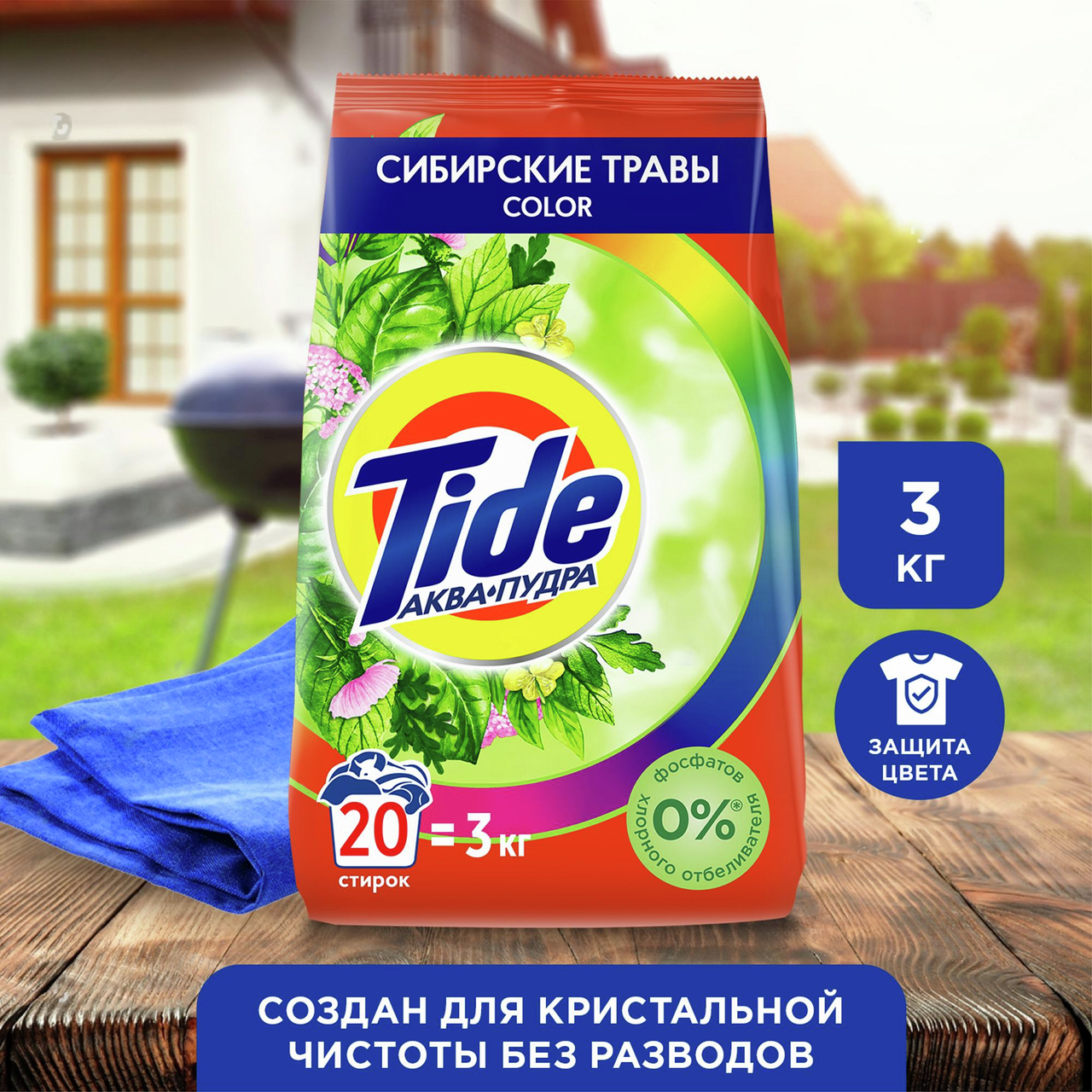 Стиральный Порошок Tide Сибирские Травы Color сочетает в себе безупречное очищение от Tide и великолепное сохранение цвета стирка за стиркой с мягким ароматом, навеянным природой России. Tide тщательно подбирает ингредиенты для своих средств.Стиральный порошок для безупречного очищения и сохранения цвета от TideМягкий аромат, навеянный природой РоссииНе содержит фосфатов и хлорного отбеливателяСпециальная формула не оставляет разводов