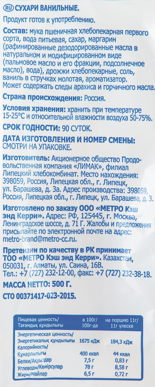 Aro Сухари ванильные, 500 г изготавливаются из натуральных ингредиентов. Это вкусный и полезный перекус для любителей похрустеть любого возраста. Сухари быстро утоляют чувство голода и насыщают организм. В состав входят большое количество витаминов и минералов, оказывающих положительное воздействие на работу всего организма человека. Продукт не оставляет тяжести в животе. За счет высокого содержания пищевых волок��н хорошо стимулирует перистальтику кишечника.