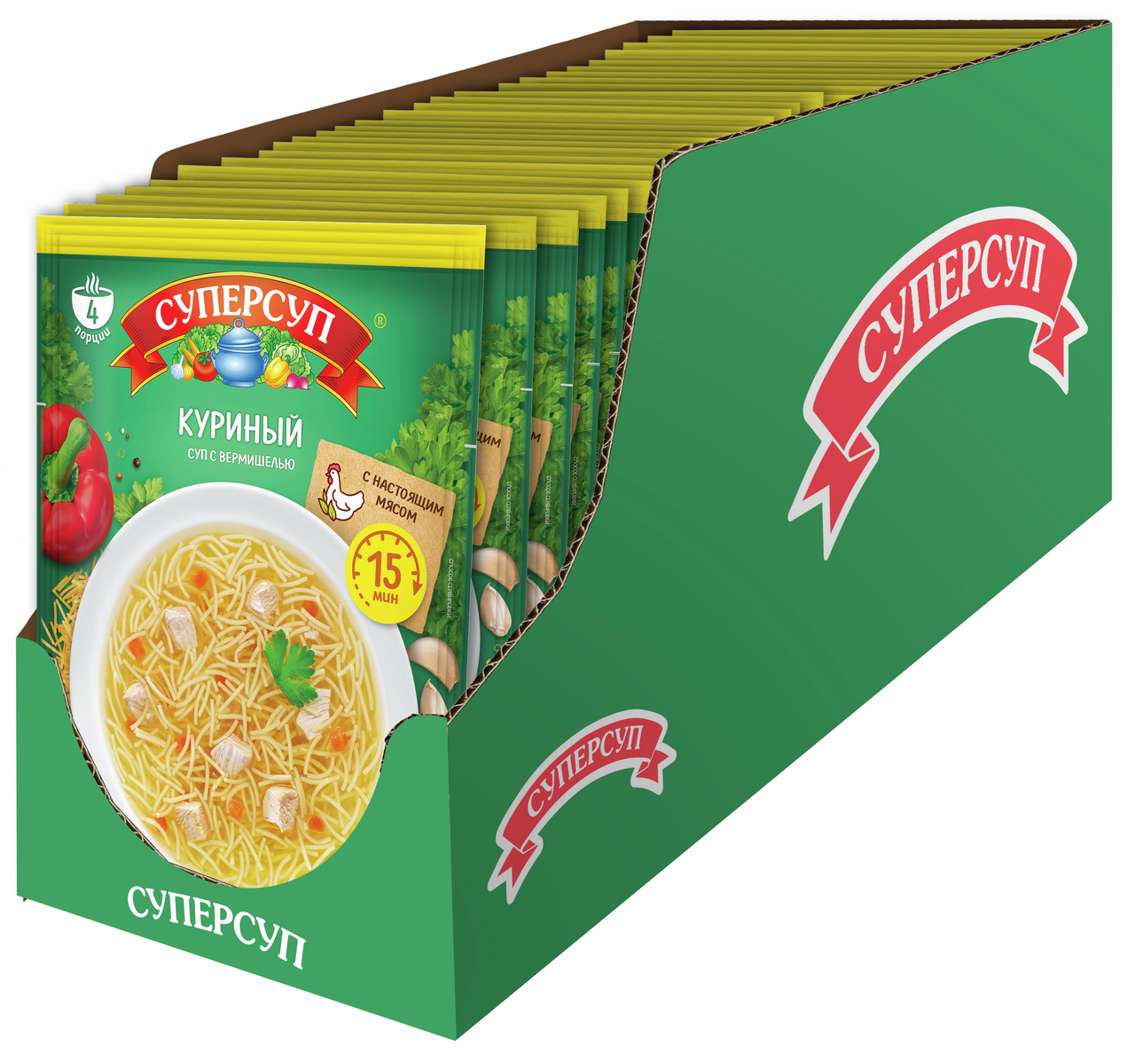 Ароматный и питательный суп, который не оставит никого равнодушным. Суперсуп - это натуральные овощи, настоящее мясо и насыщенный вкус. Отличный вариант для полноценного сытного обеда. Приготовьте суп куриный в стакане и насладитесь классическим вкусом, который подчеркивается ароматом зелени и пряностей.