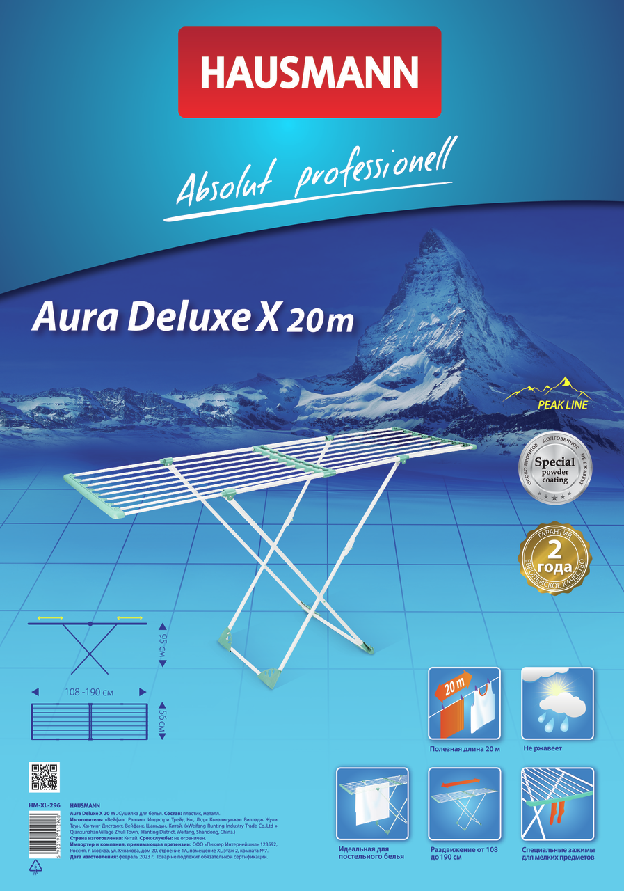 Сушилка для белья напольная Hausmann Aura Deluxe X, 190 x 56 x 95см