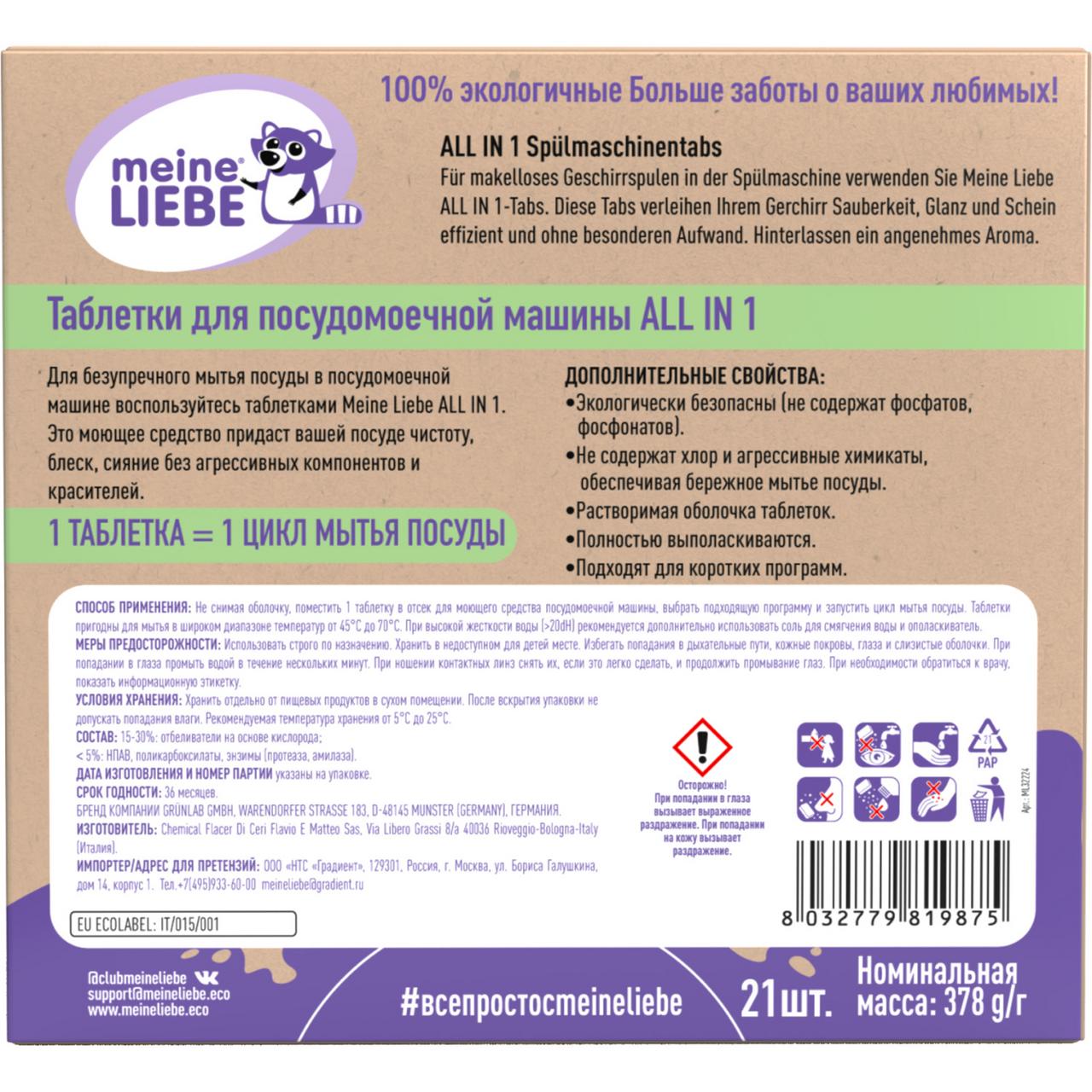 Таблетки для посудомоечной машины Meine Liebe All in 1, 21шт