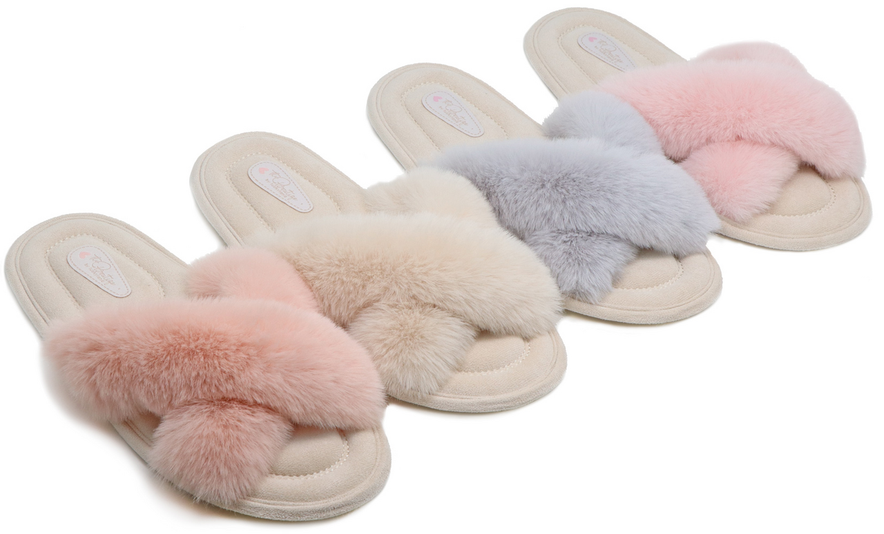 Тапочки женские Lucky Land перекрестное плетение с мехом