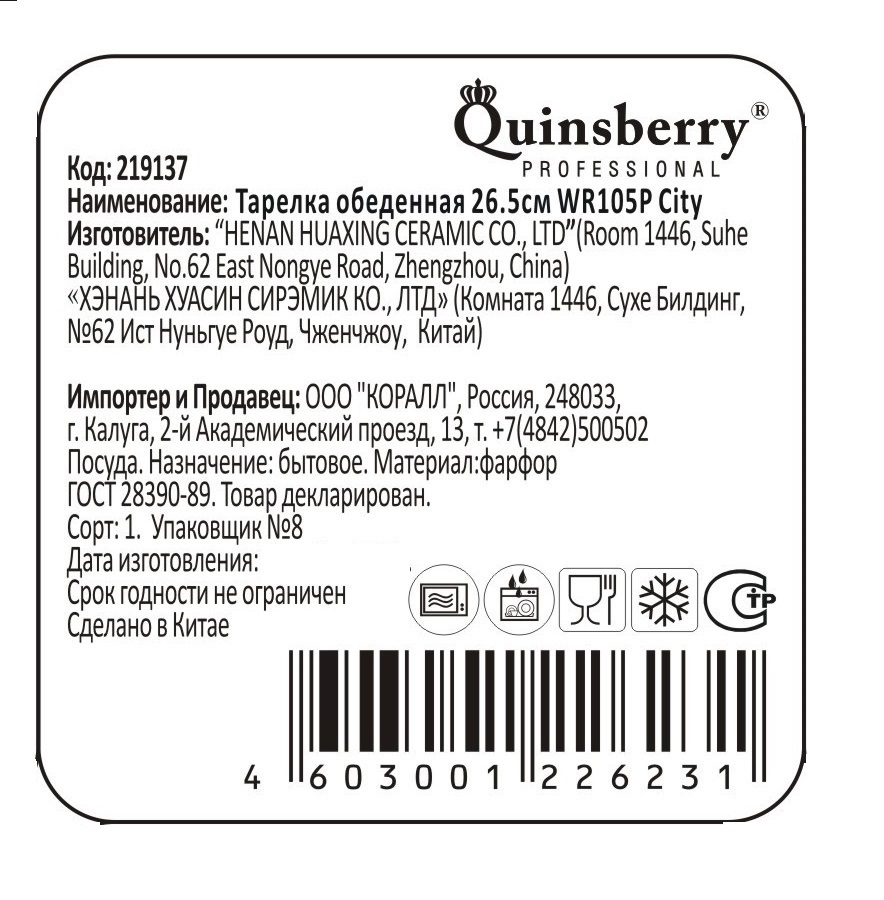 Тарелка Quinsberry Professional City обеденная, 26,5 см обеспечит эффектную подачу блюд во время повседневной сервировки стола и праздничных мероприятий. Изделие выглядит элегантно и презентабельно. В результате посуда сможет украсить повседневное или праздничное застолье, устроив даже требовательную хозяйку. Обеденная тарелка выполнена в лаконичном дизайне, благодаря чему подходит к любой ситуации. Материал посуды прочный и экологичный, долгие годы сохраняет форму, блеск. Он устойчив к агрессивным средам и легко очищается даже в холодной воде. Однако требует бережного отношения и хранения, не выносит ударов. За тарелкой легко ухаживать. Ее без опасения можно очищать как ручным способом с помощью мягких моющих средств (без использования абразивных частиц), так и в посудомоечной машине. Обеденная тарелка составит удачный тандем с другой посудой представленного бренда.