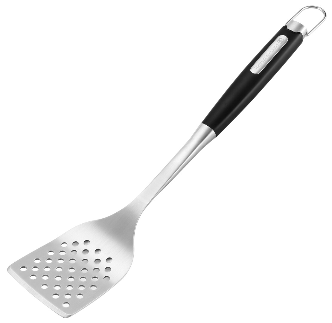 Tarrington House Лопатка для гриля из нержавеющей стали пластика, 42 x 15 x 8 см незаменима в быту. Она позволит легко и быстро перевернуть на сковороде или противне жареный картофель, мясо, птицу и рыбу. А за счет специальных отверстий на рабочей поверхности масло не попадает на продукт при переворачивании, что исключает риск возгорания и задымления. Лопатка выполнена из качественной нержавеющей стали, устойчивой к коррозии и пищевым кислотам. Этот материал не впитывает запахи и не окрашивается в другой цвет. Благодаря эргономичной конструкции и накладкам на ручке изделие удобно ложится в ладонь и не выскальзывает из нее. Очищать лопатку можно как ручным способом, так и в посудомоечной машине.