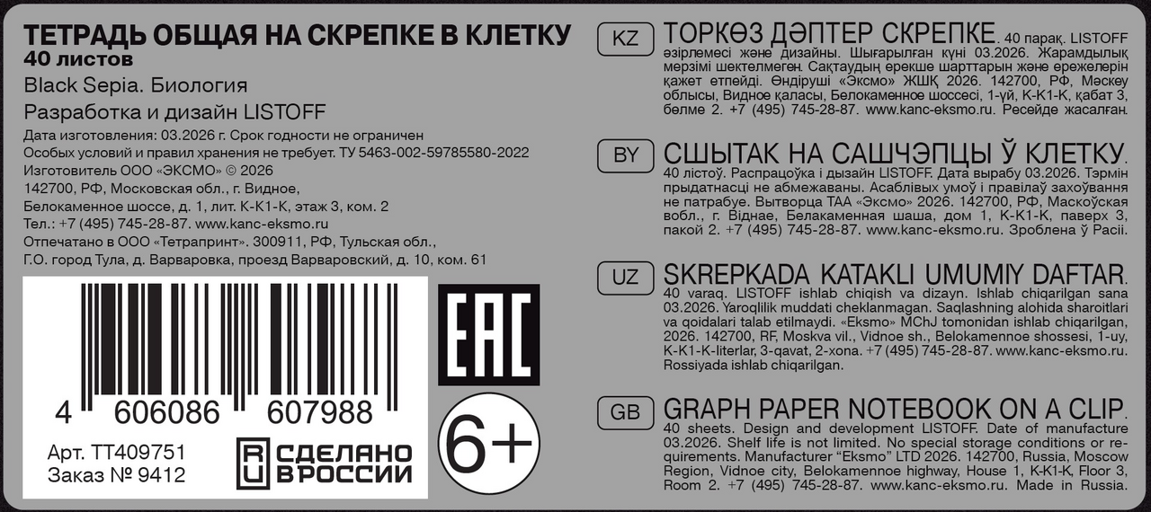 Тетради предметные серии Black Sepia - бюджетная коллекция в трендовом черном цвете и броским дизайном. Современное цветовые решение и стильные элементы непременно придутся по вкусу старшеклассникам, которые шагают в ногу со временем и следят за трендами. Внутри тетради классический внутренний блок, краткая справочная информация. Формат 40 листов в клетку или линию идеально подходит для школьных занятий и домашних заданий. Белая офсетная бумага плотностью 60г/м обеспечивает комфортное письмо без просвечивания чернил. Крепление: скрепка.