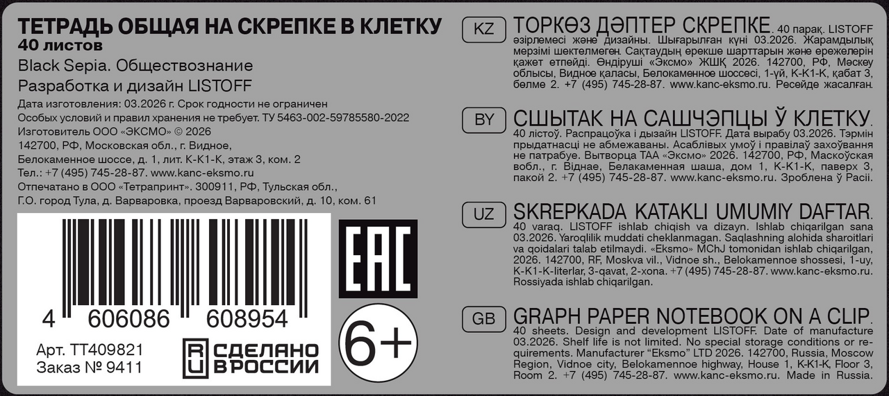 Тетради предметные серии Black Sepia - бюджетная коллекция в трендовом черном цвете и броским дизайном. Современное цветовые решение и стильные элементы непременно придутся по вкусу старшеклассникам, которые шагают в ногу со временем и следят за трендами. Внутри тетради классический внутренний блок, краткая справочная информация. Формат 40 листов в клетку или линию идеально подходит для школьных занятий и домашних заданий. Белая офсетная бумага плотностью 60г/м обеспечивает комфортное письмо без просвечивания чернил. Крепление: скрепка.