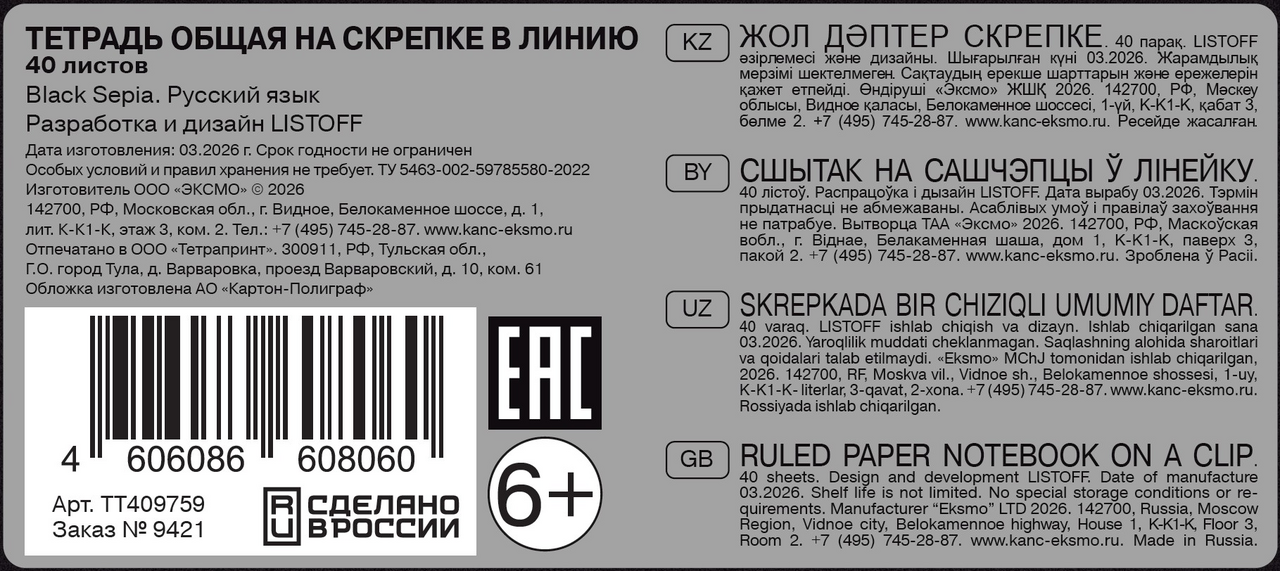 Тетрадь предметная Listoff Black Sepia Русский язык А5