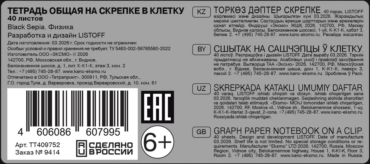 Тетради предметные серии Black Sepia - бюджетная коллекция в трендовом черном цвете и броским дизайном. Современное цветовые решение и стильные элементы непременно придутся по вкусу старшеклассникам, которые шагают в ногу со временем и следят за трендами. Внутри тетради классический внутренний блок, краткая справочная информация. Формат 40 листов в клетку или линию идеально подходит для школьных занятий и домашних заданий. Белая офсетная бумага плотностью 60г/м обеспечивает комфортное письмо без просвечивания чернил. Крепление: скрепка.