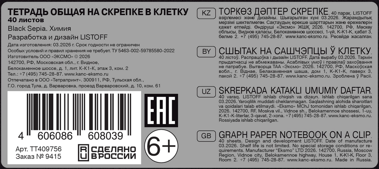 Тетради предметные серии Black Sepia - бюджетная коллекция в трендовом черном цвете и броским дизайном. Современное цветовые решение и стильные элементы непременно придутся по вкусу старшеклассникам, которые шагают в ногу со временем и следят за трендами. Внутри тетради классический внутренний блок, краткая справочная информация. Формат 40 листов в клетку или линию идеально подходит для школьных занятий и домашних заданий. Белая офсетная бумага плотностью 60г/м обеспечивает комфортное письмо без просвечивания чернил. Крепление: скрепка.