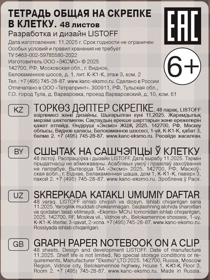 Тетрадь Listoff Russian Doll клетка А5, 48л