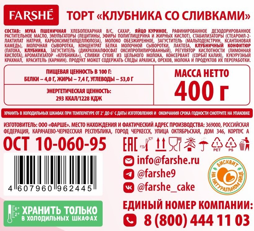 Мука пшеничная хлебопекарная, сахар, яйцо куриное, рафинированное дезодорированное растительное масло, эмульгаторы лецитины, эфиры полиглицерина и жирных кислот стабилизаторы стеароил-2-лактилат натрия, карбоксиметилцеллюлоза, молоко обезжиренное, загуститель мальтодекстрин, ксантановая камедь, молочная сыворотка, концентрат белка молочной сыворотки, лактоза, клубничный конфитюр патока, клубника, загуститель дикрахмалфосфат оксипропилированный, регулятор кислотности лимонная кислота, ароматизатор Клубника, сливки сухие из цельного молока, консервант сорбат калия, кукурузный крахмал, краситель кармин.