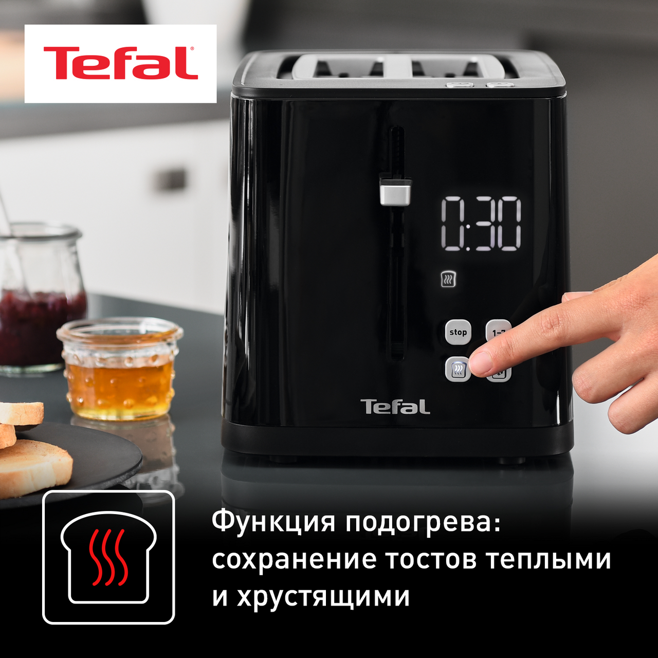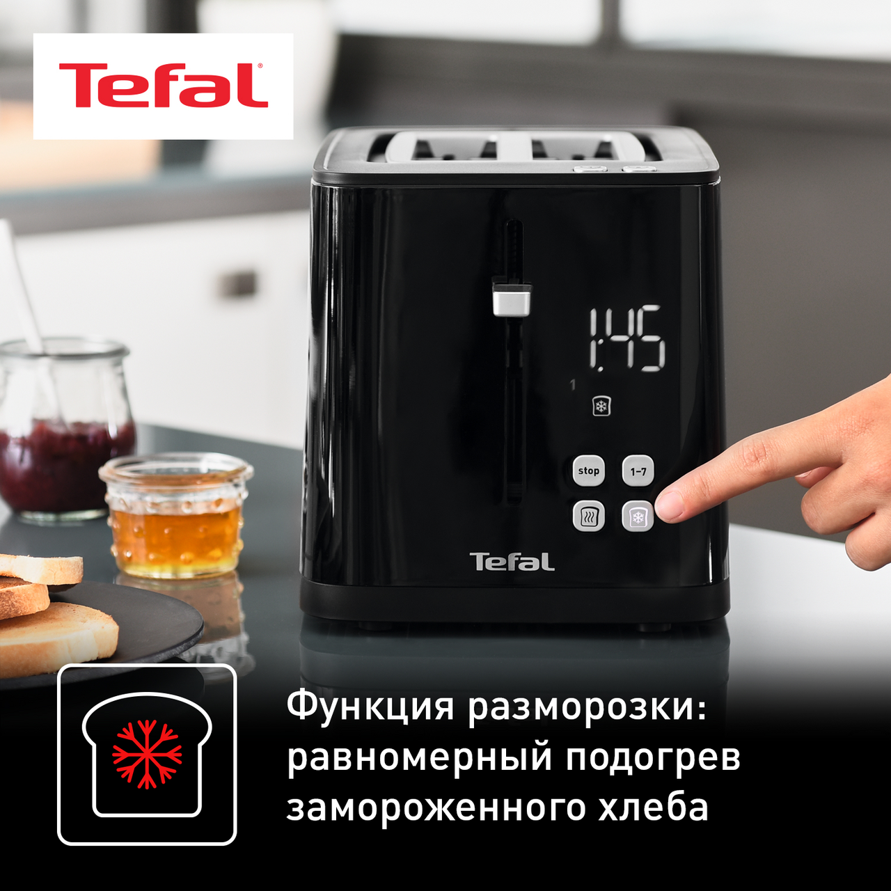 Приготовьте на завтрак аппетитные хрустящие тосты с помощью тостера Tefal Smart&Light. Теперь у каждого ломтика хлеба будет идеальная золотистая корочка, ведь устройство предлагает несколько режимов приготовления, а встроенный цифровой дисплей показывает время до конца программы.