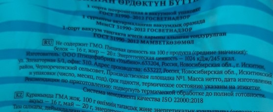 - Тип упаковки Вакуумная упаковка