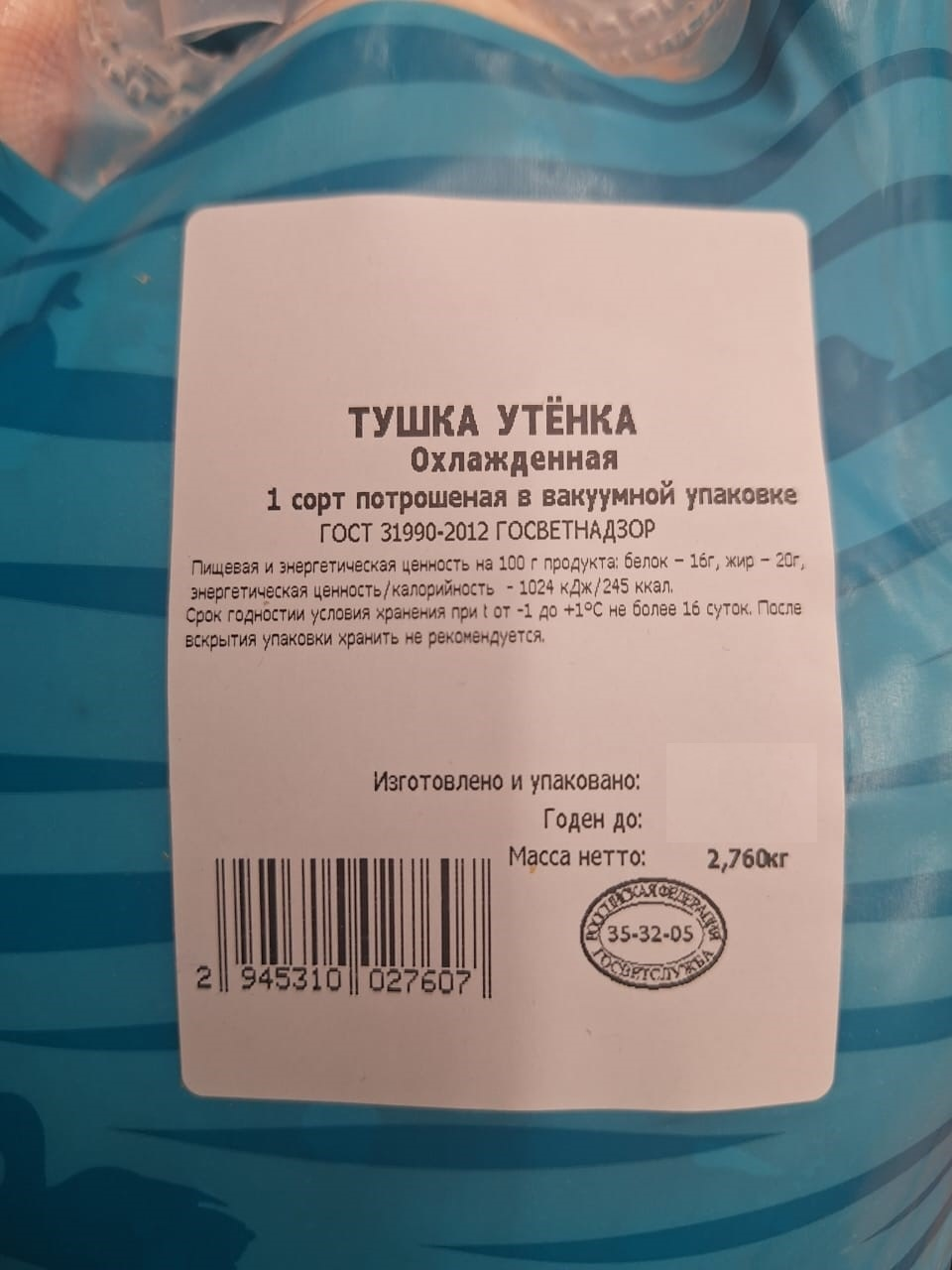 Тушка утенка Улыбино охлажденная, ~2.5кг