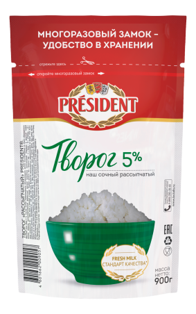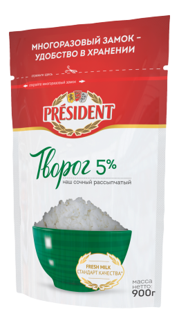 Творог President рассыпчатый 5%, 900г