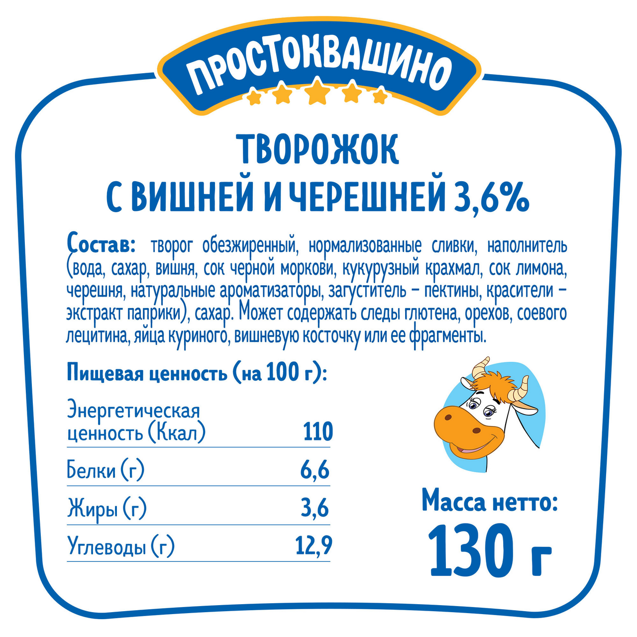 Творожок Простоквашино с вишней и черешней 3.6%, 130г