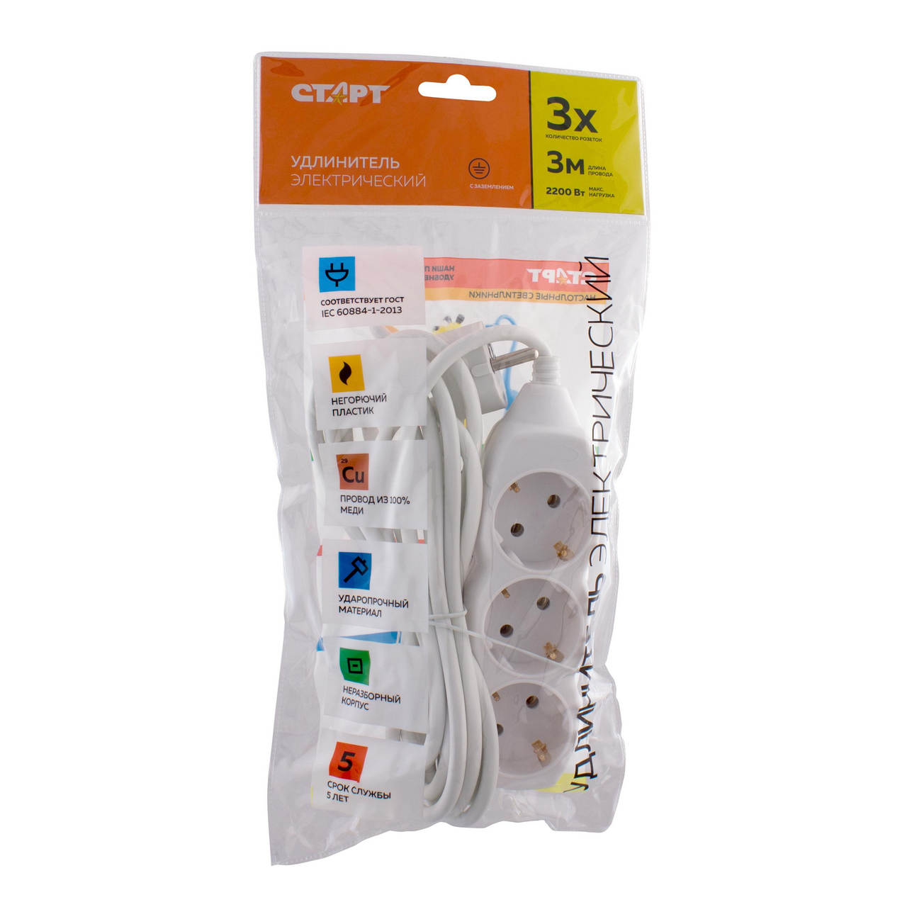 Удлинитель Старт с заземлением 3 розетки, 3м