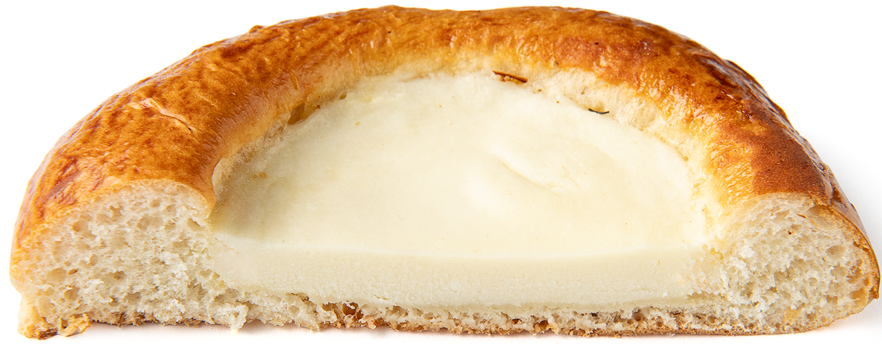Ватрушка с нежнейшей начинкой из натурального творога с добавлением натуральной сметаны и сгущенного молока. Изготовлена из сдобного теста. Имеет вид круглой, открытой сверху и защипанной лишь с краев лепешки. Особый вкус ей придает классическая творожная начинка, которая отличается мягкой и плотной текстурой.