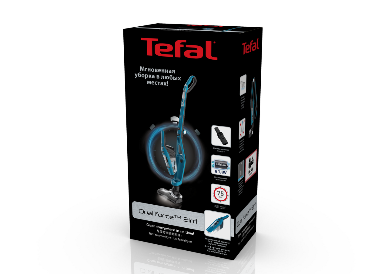 Пылесос вертикальный Tefal TY6751WO – надежный помощник, который легко и быстро приведет в порядок любое помещение. Встроенный литий-ионный аккумулятор обеспечивает автономную работу прибора без подзарядки в течение 45 минут. Этого времени достаточно для качественной сухой уборки помещений любой площади. Подзарядка устройства займет 5 часов, после чего оно снова будет готово к эксплуатации. Маневренный и компактный пылесос весит 2,5 кг. Прибор оснащен электрощеткой с LED-подсветкой, которая позволит обработать любые виды напольных покрытий, достигнет самых труднодоступных мест. Объем пылесборника устройства – 0,6 литров. Поддержка циклонной технологии обеспечивает тщательную уборку и улучшенную фильтрацию воздуха. Складная ручка позволяет компактно хранить прибо�� в вертикальном положении. Уход подразумевает очистку резервуара для мусора и фильтра.