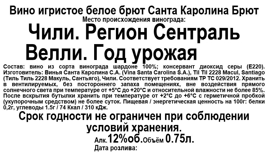 Виноград сорта Шардоне, консервант-диоксид серы (Е220).
