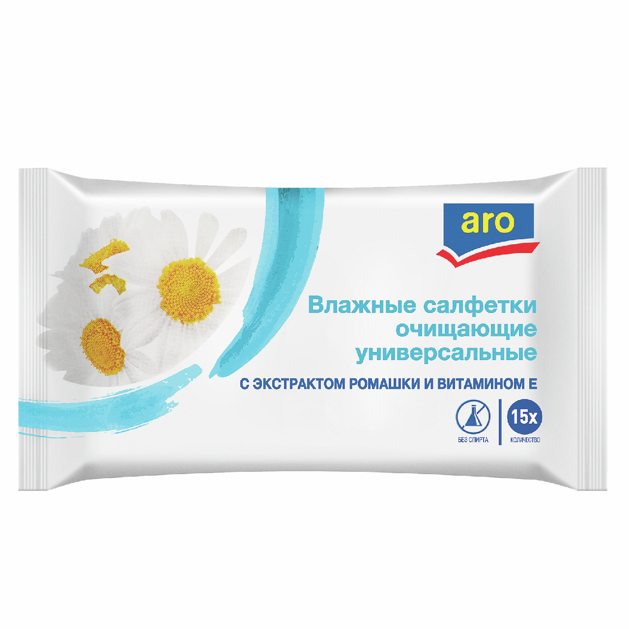 aro Салфетки влажные с витамином Е увлажняющие, 15шт