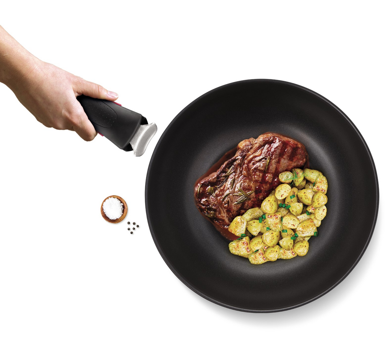 Ищете способ тратить меньше времени и сил на кухне? Серия Tefal Ingenio позаботилась о вас. Съемная ручка (продается отдельно) для легкого перемещения посуды с плиты прямо в духовку или холодильник? Есть! Компактный дизайн для экономии места в кухонных шкафчиках? Сделано! Ingenio: готовить проще! Tefal представляет Ingenio Daily Cook – посуду из высококачественной нержавеющей стали с безопасным антипригарным покрытием Titanium non-stick 2X. В этих исключительно прочных и долговечных сковородах, ковшах и сотейниках блюда получаются равномерно приготовленными и особенно вкусными и ароматными. Посуда Ingenio не подходит для хранения кислых продуктов.