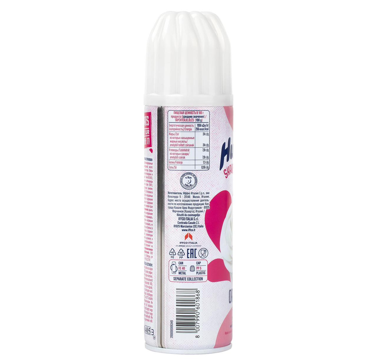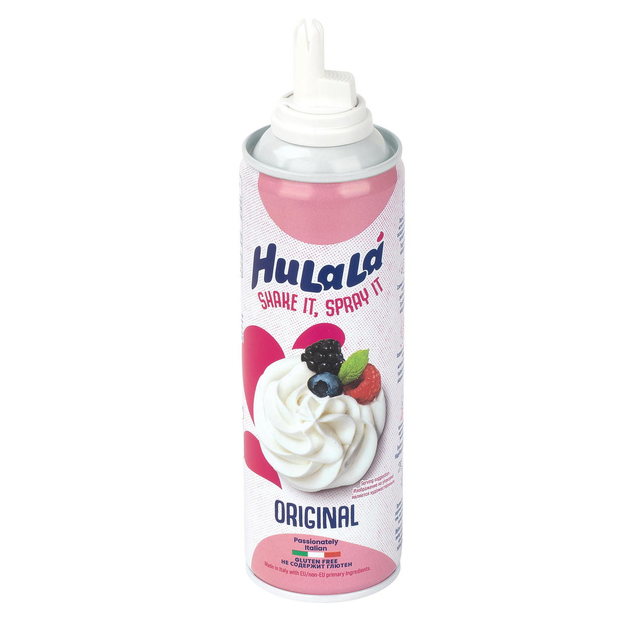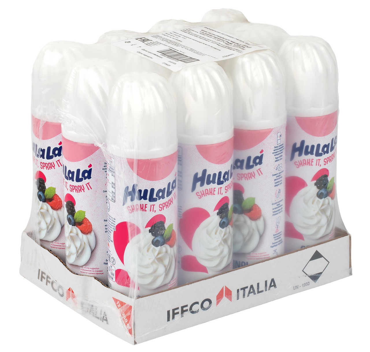 Взбитый крем Hulala растворимый 24% с сахаром, 250 г имеет удобный формат спрея, который подходит для длительного хранения. Взбитые сливки станут лучшим выбором для украшения выпечки, пирожных и тортов, для создания оригинальных десертов из мороженого. Их можно подать с вафлями, блинчиками или оладьями.