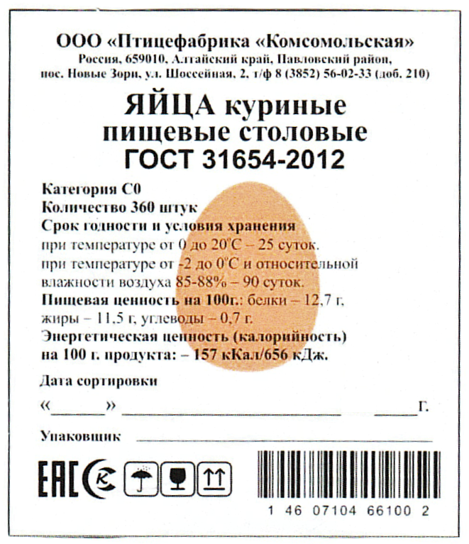 Яйцо куриное столовое С0, 360шт