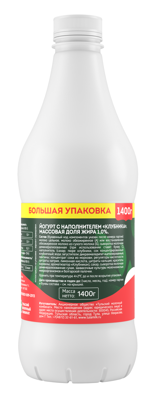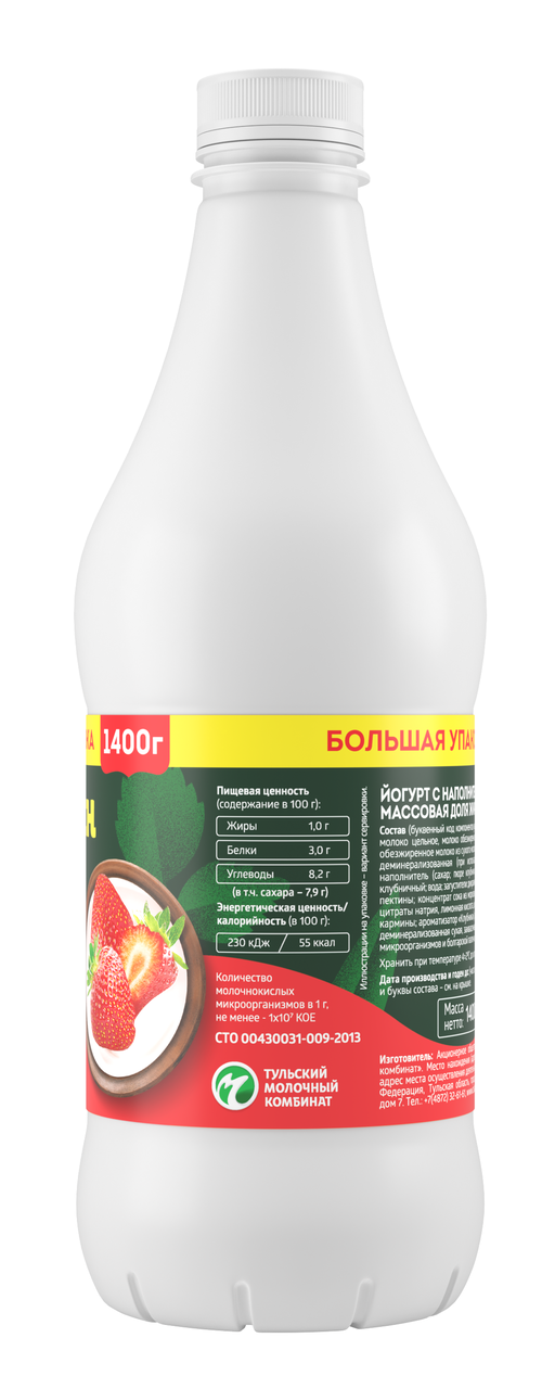 Йогурт питьевой Бежин луг клубника 1%, 1.4кг