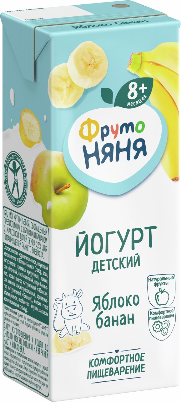 Йогурт питьевой ФрутоНяня яблоко и банан 2.5%, 200г