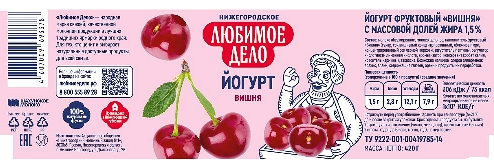 Йогурт питьевой Любимое дело с вишней 1.5%, 420г - йогурт подойдет как для самостоятельных полезных перекусов, так и для добавления в хлопья, мюсли и гранолу. А еще его можно использовать в качестве альтернативной заправки для салатов.
