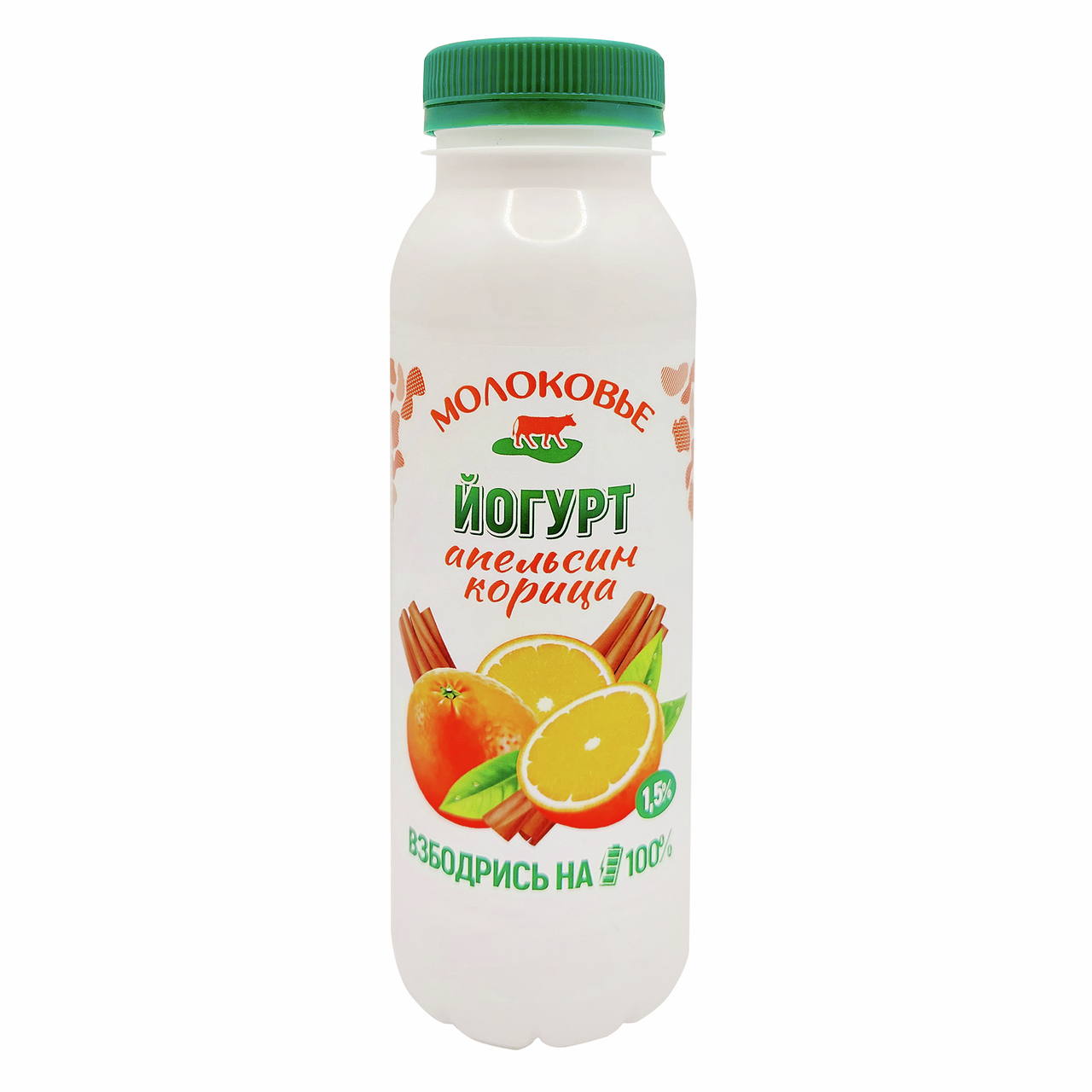 Йогурт питьевой Молоковье апельсин-корица 1.5%, 270г