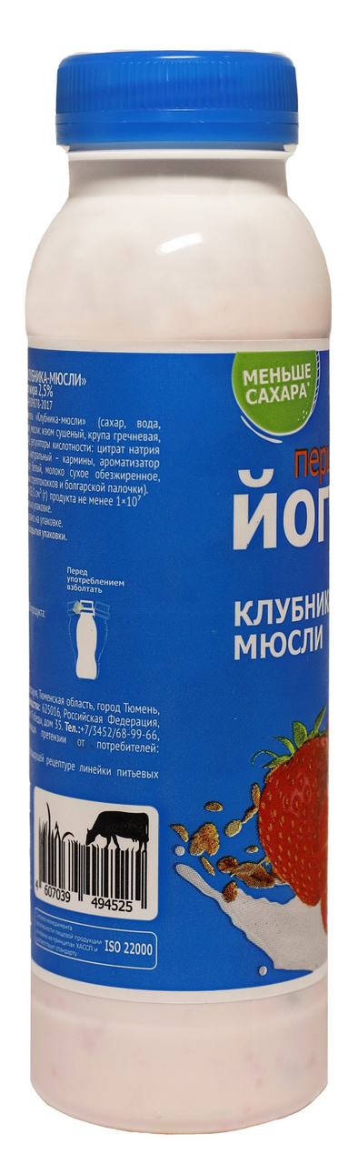 Йогурт питьевой Першинское клубника-мюсли 2.5%, 270г - натуральный продукт из настоящего молока. Йогурт способствует улучшению пищеварения, он легко усваивается организмом. Йогурт полезен как взрослым, так и детям, он важен для спортсменов и тех, кто придерживается здорового питания. Йогурт можно употреблять как дополнение к завтраку и ужину и в качестве перекуса в течение дня.