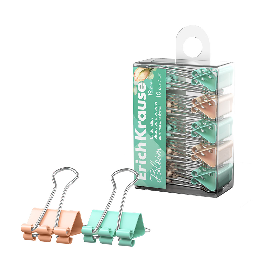Зажимы для бумаг Erich Krause Pastel Bloom 19мм, 10шт