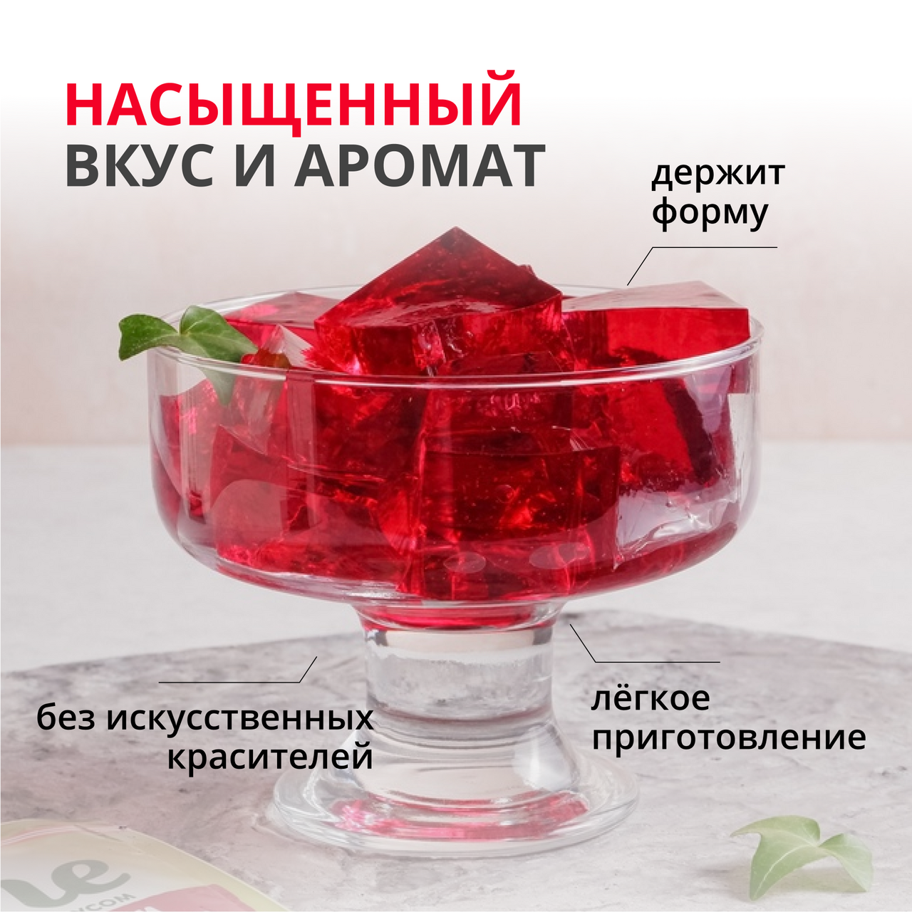 Быстро застывает и сохраняет форму. Обладает ярким вкусом и цветом. Легко готовится с добавлением 200 мл воды и не требует добавления сахара. Можно приготовить многослойные десерты различной формы и удивить близких и друзей необычным угощением! Натуральные красители в составе желе.