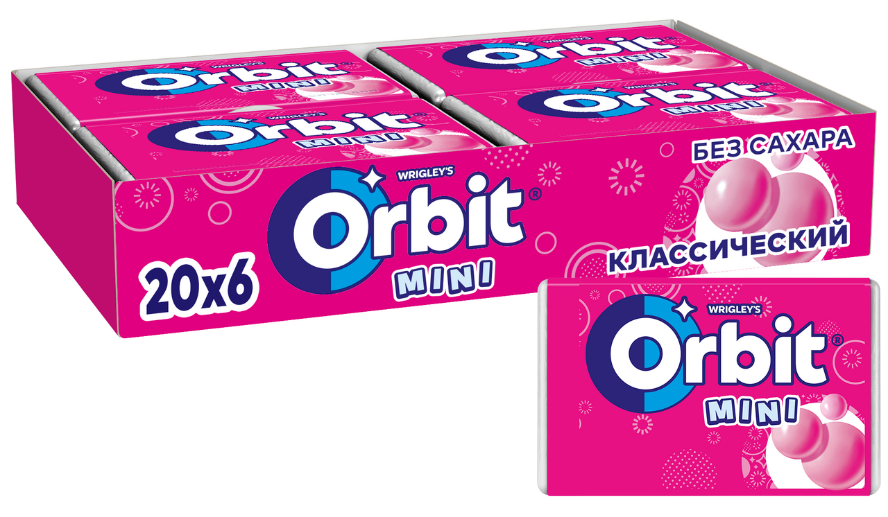 Orbit mini Классический - жевательная резинка без сахара с освежающим классическим вкусом. Жевательная резинка помогает заботиться о зубах: удаляет остатки пищи, способствует уменьшению зубного налета, нейтрализует вредные кислоты и усиливает процесс реминерализации эмали. Orbit mini Классический освежает мысли и позволяет сконцентрироваться на важных задачах, будь то работа или учеба. Жевательная резинка Orbit не прилипает к зубам, освежает дыхание и долго сохраняет насыщенный вкус. В упаковке 6 пластинок жевательной резинки Orbit mini Классический. У каждого из нас бывают моменты, когда ты сам не свой и кажется, что все идет не так. Накрутил себя? Завал на работе или учебе? Жуй, когда нужно сконцентрироваться и принять решение. Жуй, чтобы выдохнуть и расслабиться. Это жевательная резинка без сахара, которая дарит внутреннее ощущение уверенности, так необходимое нам в личной жизни, профессиональных и даже мелких бытовых ситуациях. Жевательная резинка без сахара помогает поддерживать здоровье зубов: удаляет остатки пищи, способствует уменьшению зубного налета, нейтрализует вредные кислоты, усиливает процесс реминерализации эмали.