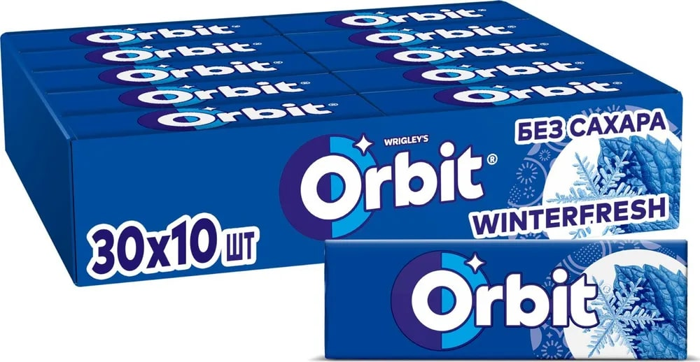 Orbit Winterfresh - это жевательная резинка без сахара со вкусом мяты и ментола, которая дарит внутреннее ощущение уверенности, которое нам необходимо в личной жизни, профессиональных и даже мелких бытовых ситуациях. Попробуйте Orbit Winterfresh и получите ощущение свежести и заряд уверенности в нужный момент. Жевательная резинка Orbit без сахара помогает поддерживать здоровье зубов: удаляет остатки пищи, способствует уменьшению зубного налета, нейтрализует вредные кислоты, усиливает процесс реминерализации эмали. Употребление жевательной резинки каждый раз после еды способствует поддержанию чистоты и здоровья зубов в дополнение к уходу за ротовой полостью с помощью зубной щетки.